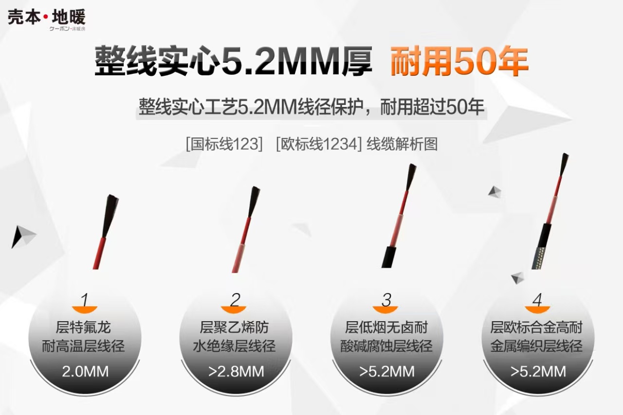 目測碳纖維地暖線徑。優(yōu)質(zhì)碳纖維電地暖線纜總線徑厚度應(yīng)該在5.2mm以上,線徑越厚則保護(hù)性能越好,要保證碳纖維電地暖運(yùn)行50年,碳纖維電地暖的線徑厚度就一樣要達(dá)標(biāo)。偷工減料減少線徑厚度,對保護(hù)性能有影響。